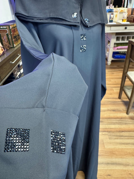 Black & Blue Abaya with Rhinestone