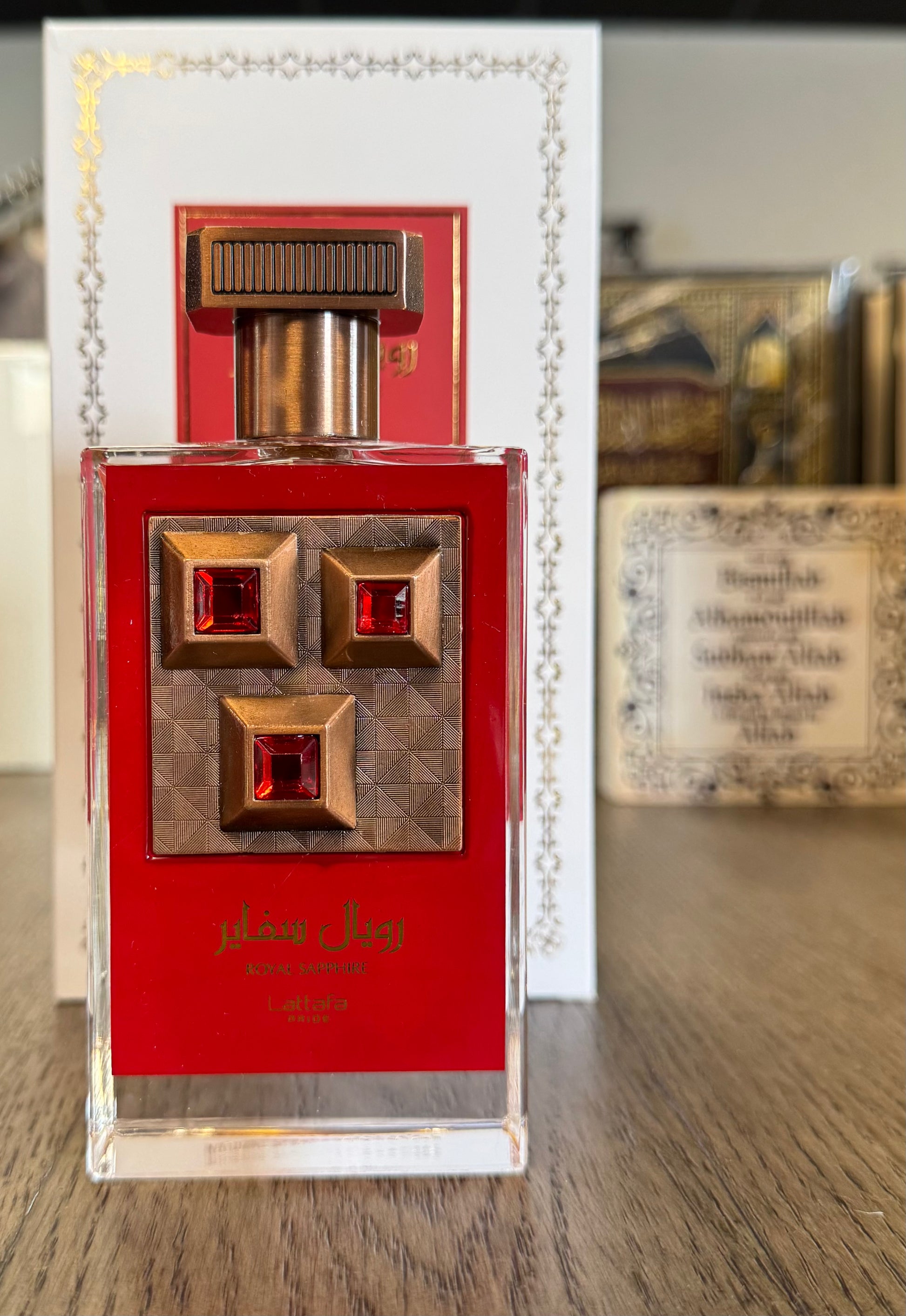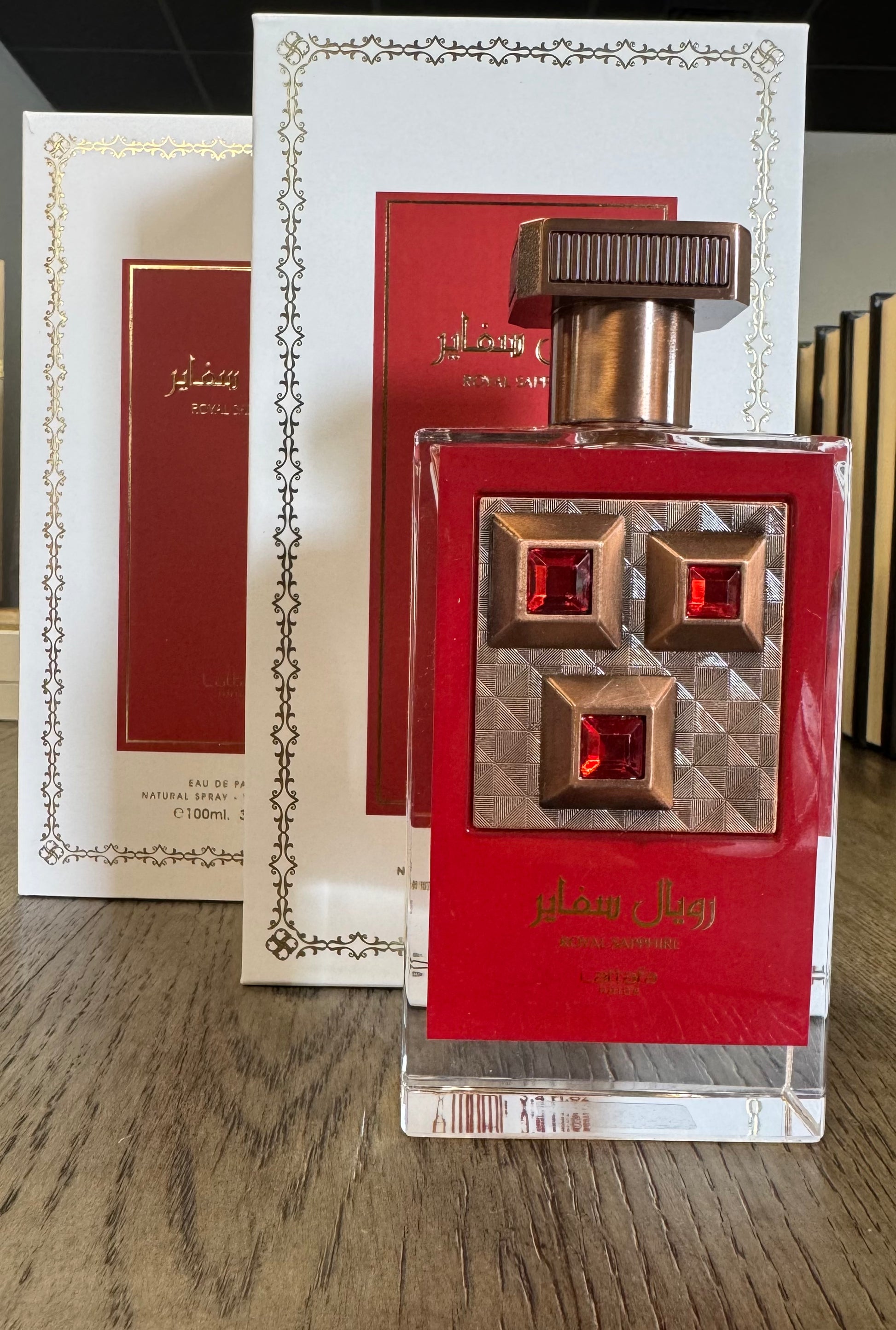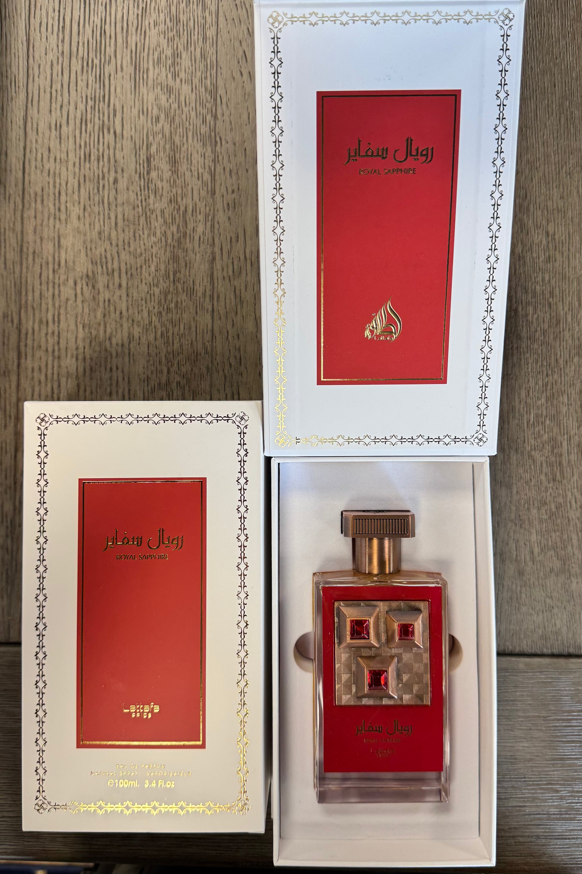 Experience the luxurious scent of Royal Sapphire. Our fragrance is crafted with exquisite ingredients to elevate your senses. Indulge in the regal aromas that will leave you feeling like royalty. By Lattafa 100mL/3.4oz