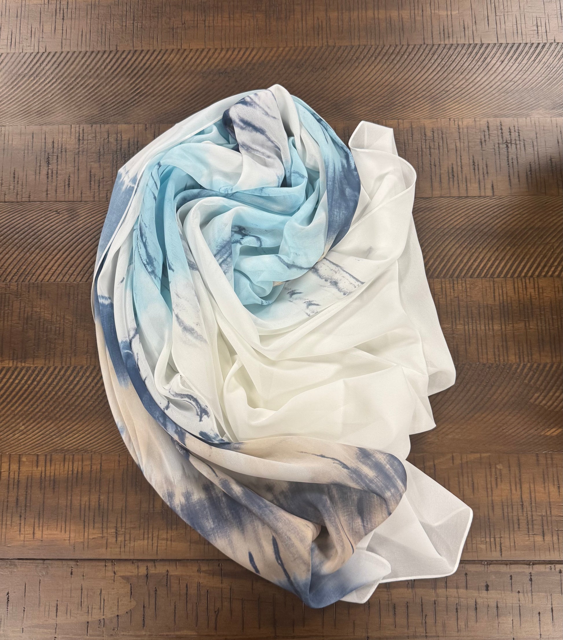 Introducing our limited edition chiffon rectangular hijab in a beautiful tie dye blue pattern. Made from high-quality chiffon material, this hijab adds a touch of elegance to any outfit while also providing breathability and comfort. Don't miss your chance to own this one-of-a-kind piece.